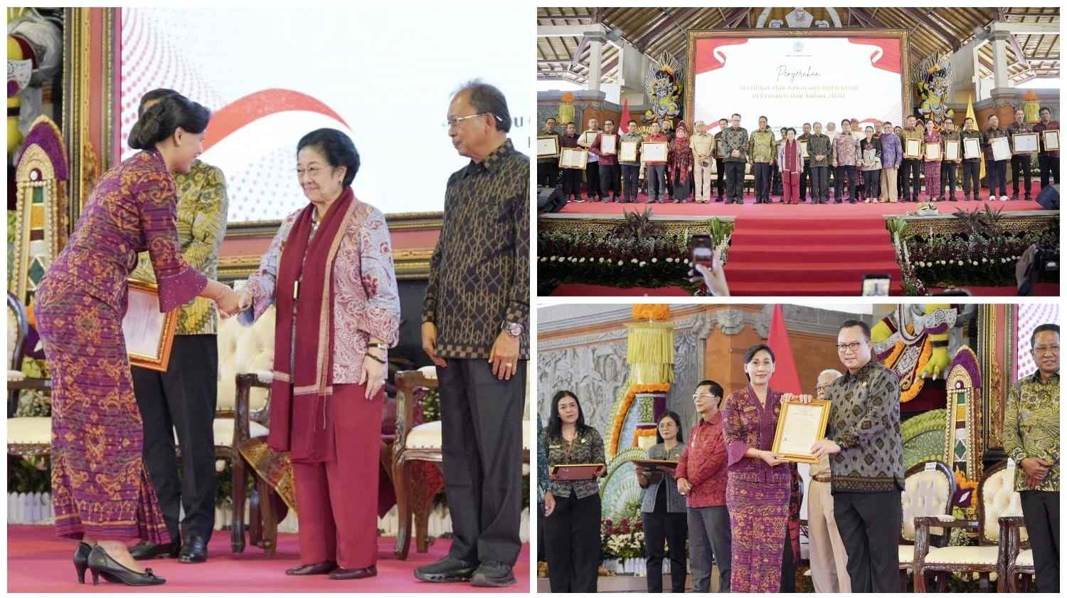 GIANYAR, MataDewata.com | Bunda PAUD Kabupaten Gianyar Ny. Dr. Ida Ayu Surya Adnyani Mahayastra menerima sertifikat Hak Kekayaan Intelektual (HKI) dari Direktorat Jenderal Kekayaan Intelektual (DJKI) Kementerian Hukum dalam acara Penyerahan Sertifikat Hak Kekayaan Intelektual Tahun 2026 pada Rabu, (1/4/2026) bertempat di Balai Budaya Ida Dewa Agung Istri Kanya Kabupaten Klungkung yang dihadiri langsung oleh Ketua Dewan Pengarah Badan Riset dan Inovasi Nasional (BRIN) Megawati Soekarnoputri.