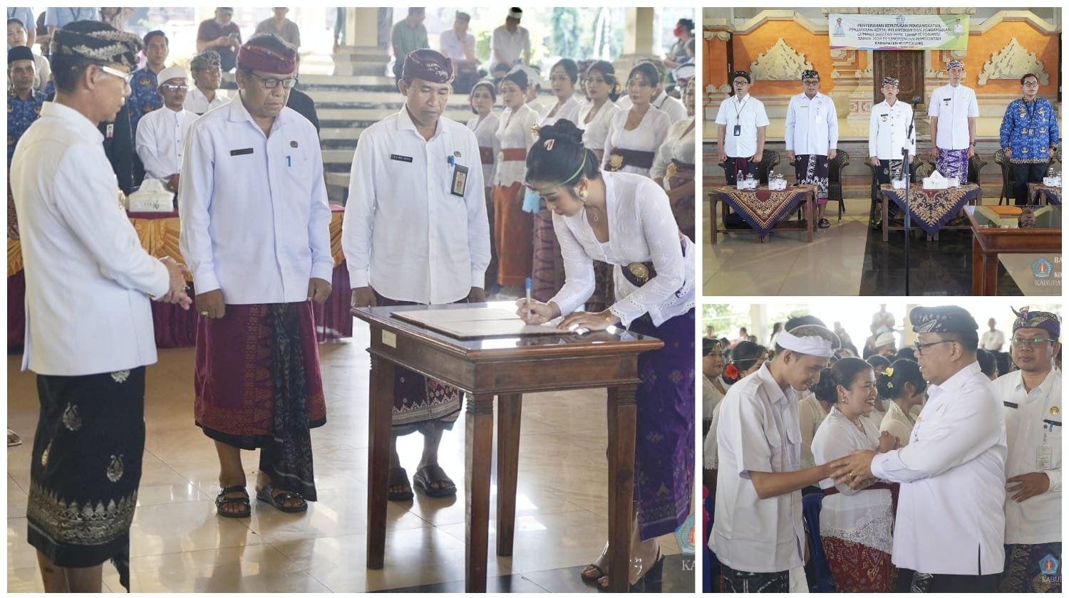 Sebanyak 161 orang menerima Surat Keputusan Bupati tentang Pengangkatan PPPK dan surat pernyataan melaksanakan tugas yang terhitung mulai tanggal 1 Oktober 2025. Penyerahan Keputusan ini turut disaksikan Wakil Bupati Klungkung, Tjokorda Gde Surya Putra, Sekda Klungkung Anak Agung Gede Lesmana, Kepala BKN dan Kepala OPD dilingkungan Pemkab Klungkung.