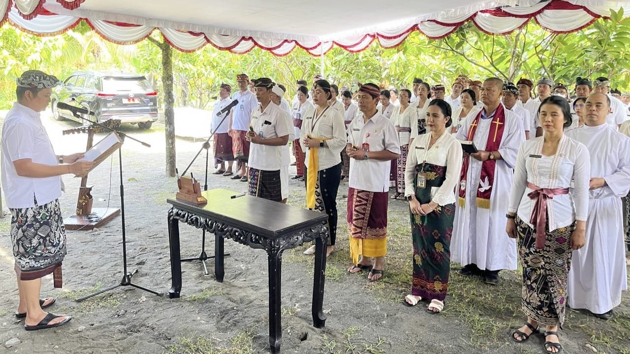 JEMBRANA, MataDewata.com | Pemerintah Kabupaten Jembrana mengawali tahun 2026 dengan cara yang tak biasa. Bupati I Made Kembang Hartawan melantik dan mengambil sumpah jabatan sejumlah pejabat tinggi pratama, administrator dan pengawas di tengah kebun kakao milik I Ketut Sudomo, di Banjar Moding, Desa Candikusuma, Kamis (2/1/2026). Kebun kakao dipilih sebagai simbol agar pejabat yang dilantik tidak terlepas dari realitas kehidupan masyarakat di Jembrana.