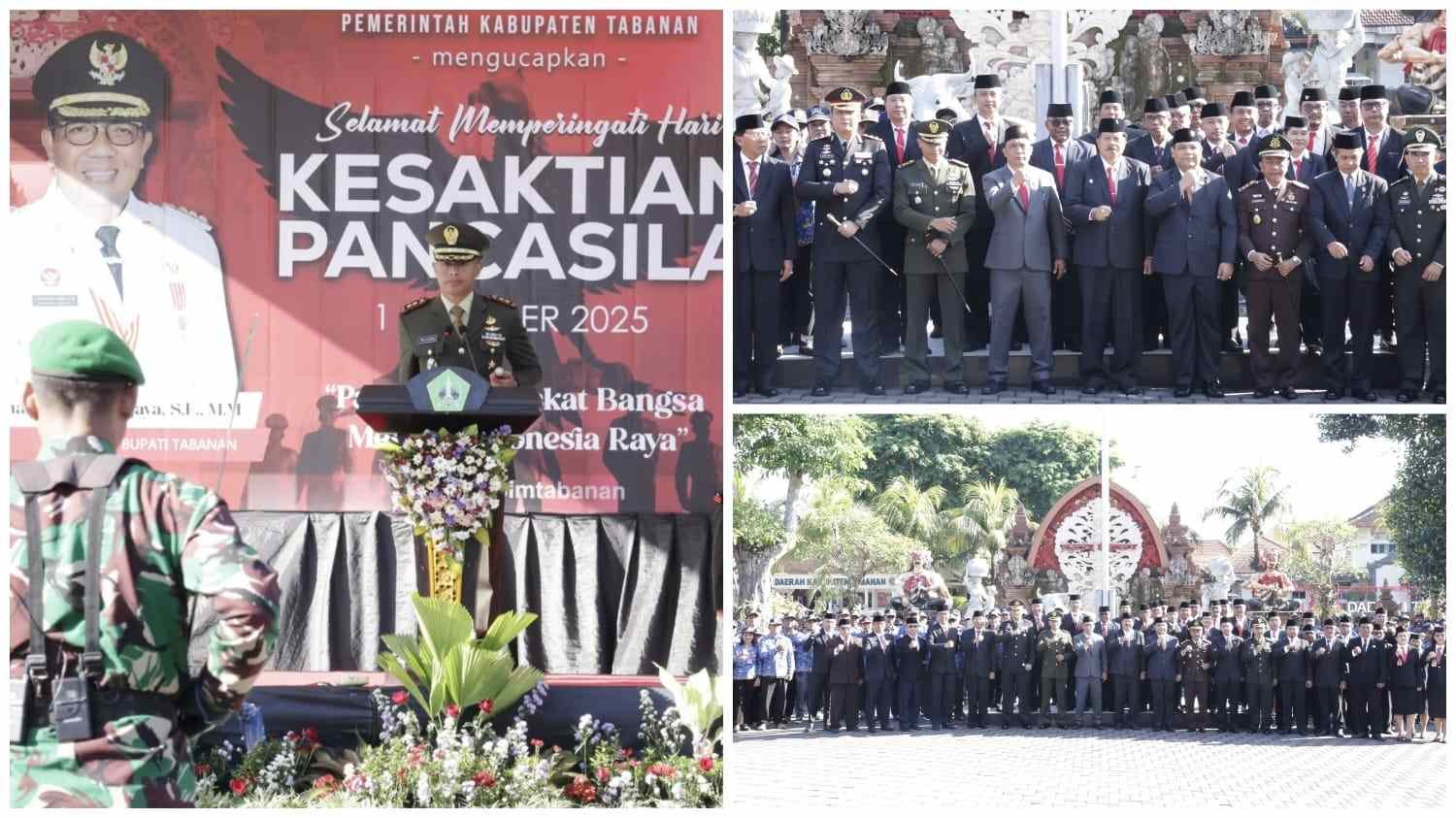 Upacara yang mengusung tema “Pancasila Perekat Bangsa Menuju Indonesia Raya” tersebut dipimpin oleh perwakilan Dandim 1619/Tabanan Letkol Trijuang Danarjati, Suasana khidmat mewarnai jalannya upacara, sebagai bentuk penghormatan terhadap jasa para pahlawan dalam mempertahankan ideologi Pancasila dari berbagai ancaman. Kehadiran seluruh komponen ini mencerminkan soliditas dan kebersamaan dalam menjaga keutuhan NKRI.