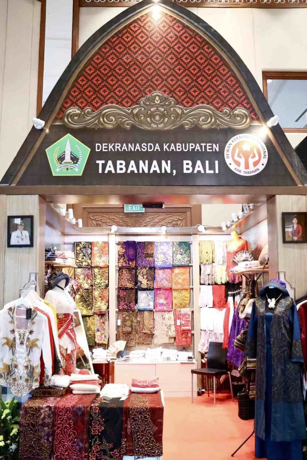 Dekranasda Kabupaten Tabanan tidak melewatkan kesempatan ini dengan mengajak perwakilan IKM untuk turut berpartisipasi. Melalui ajang ini, produk-produk unggulan Tabanan diperkenalkan secara luas, sekaligus menunjukkan kesiapan pelaku IKM Tabanan untuk bersaing di tingkat nasional hingga internasional. Adapun perwakilan yang tampil dalam pameran ini antara lain, IKM Suwari Loka, IKM Ita Collection dan IKM Rosi Yarn Craft.
