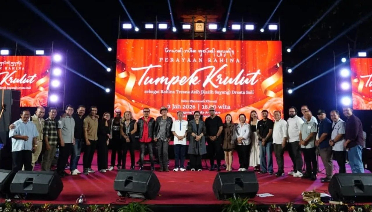 DENPASAR, MataDewata.com | Pemerintah Provinsi Bali (Pemprov Bali) menggelar konser perayaan Tumpek Krulut di Panggung Terbuka Art Centre Denpasar pada Sabtu, (3/1/2026). Berbeda dengan perayaan sebelumnya, perayaan hari kasih sayang dresta Bali kali ini dimeriahkan oleh berbagai penyanyi lokal Bali mulai dari Putri Bulan, Lebri Partami, Agus Veron, Bayu KW, Yong Sagita, Jun Bintang, Lolot hingga Bagus Wirata. Perayaan Tumpek Krulut ini mendapatkan apresiasi yang sangat baik dari masyarakat Bali.