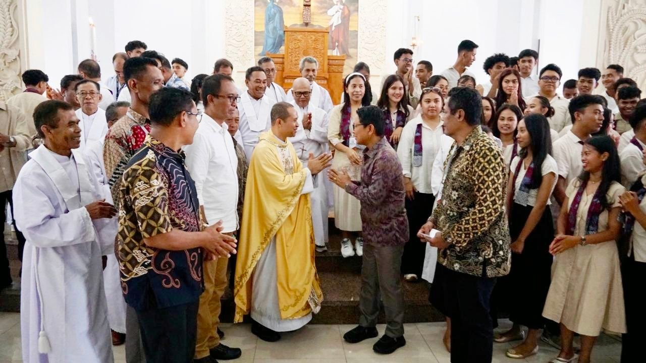 BADUNG, MataDewata.com | Suasana perayaan Hari Paskah di Gereja Katolik Maria Bunda Segala Bangsa, di lingkungan Pusat Peribadatan Puja Mandala, Kuta Selatan, Badung, pada Minggu (5/4/2026), terasa sedikit berbeda dari tahun-tahun sebelumnya. Untuk pertama kalinya, perayaan ini dihadiri langsung oleh Bupati Badung I Wayan Adi Arnawa dan kehadiran orang nomor satu di Gumi Keris ini menjadi perhatian umat yang mengikuti misa.