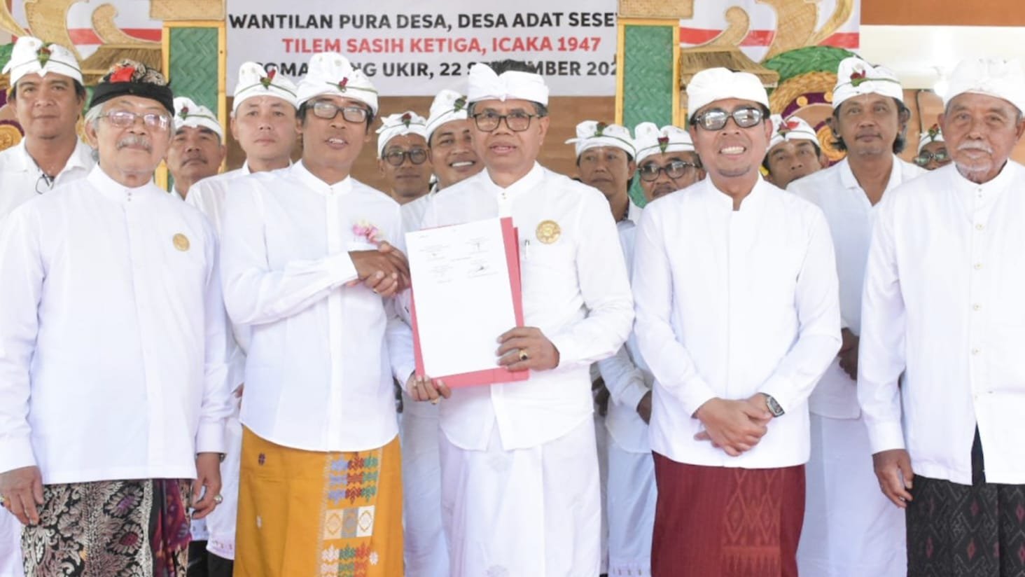 DENPASAR, MataDewata.com | I Made Sudama, S.Sn resmi dikukuhkan menjadi Bendesa Adat Sesetan, Kecamatan Denpasar Selatan Masa Ayahan Icaka Warsa 1044-1949 atau Tahun Masehi 2022-2027 oleh Bendesa Madya MDA Kota Denpasar, AA Ketut Sudiana disaksikan Wakil Walikota Denpasar, I Kadek Agus Arya Wibawa di Jaba Pura Desa lan Puseh Desa Adat Sesetan, pada Tilem Sasih Katiga, Senin (22/9/2025). Pengukuhan tersebut dilaksanakan serangkaian tahapan Nagdegang Bendesa Adat yang telah berjalan lancar dan sesuai dengan Perda Provinsi Bali Nomor: 4 Tahun 2019 tentang Desa Adat.