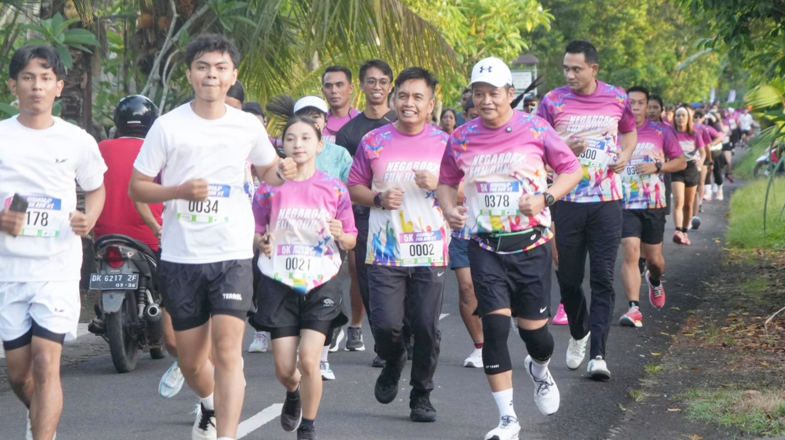 JEMBRANA, MataDewata.com | Bupati Jembrana, I Made Kembang Hartawan bersama Wakil Bupati Jembrana, I Gede Ngurah Patriana Krisna (Ipat), turut ambil bagian dalam ajang Negaroa Fun Run yang digelar, Minggu (7/12/2025). Kegiatan lari santai ini mengambil start di Gedung Kesenian Soekarno dan menempuh jarak 5 kilometer.