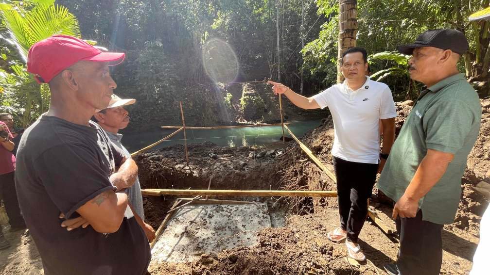 JEMBRANA, MataDewata.com | Bupati Jembrana, I Made Kembang Hartawan mengapresiasi semangat kebersamaan TNI dan masyarakat bergotong royong dalam mempercepat pembangunaan jembatan garuda di wilayah Kecamatan Mendoyo, Kabupaten Jembrana. Ungkapan kebanggaan tersebut disampaikan Bupati Kembang saat meninjau pengerjaan jembatan garuda di dua lokasi, Banjar Sekar Kejulo Kelod, Desa Yehembang Kauh dan Banjar Nusamara, Desa Yehembang Kangin, Jumat (10/4/2026).