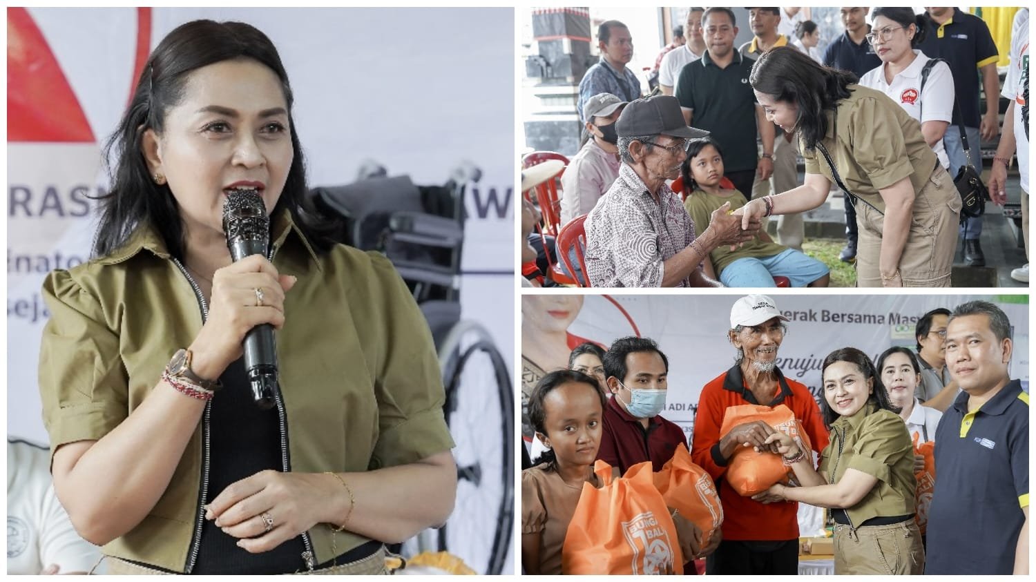 BADUNG, MataDewata.com | Ketua Koordinator Kegiatan Kesejahteraan Sosial (K3S) Kabupaten Badung, Nyonya Rasniathi Adi Arnawa melaksanakan kegiatan Aksi Sosial Badung Peduli berupa pemeriksaan kesehatan gratis dan penyerahan bantuan sembako kepada Pemerlu Pelayanan Kesejahteraan Sosial (PPKS), di Banjar Gunung Pande, Desa Tumbak Bayuh, Kecamatan Mengwi, Badung, Sabtu (9/8/225).