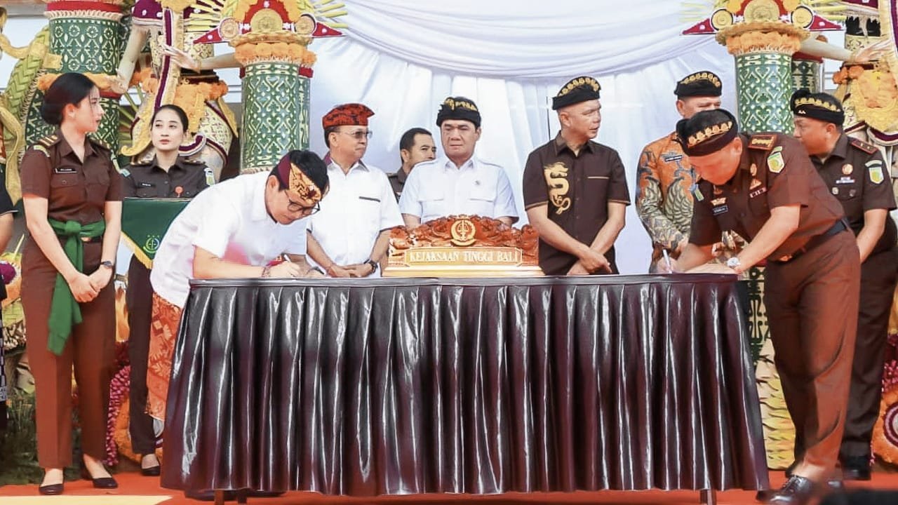 BADUNG, MataDewata.com | Bupati Badung, I Wayan Adi Arnawa, menghadiri peluncuran Program Jaga Desa Bali 2025 yang ditandai dengan penandatanganan perjanjian kerja sama (MoU) antara Bupati/Wali Kota se-Provinsi Bali dengan Kepala Kejaksaan Negeri se-Bali, bertempat di Kantor Kejaksaan Tinggi Bali, Renon, Denpasar, Kamis (11/9/2025).