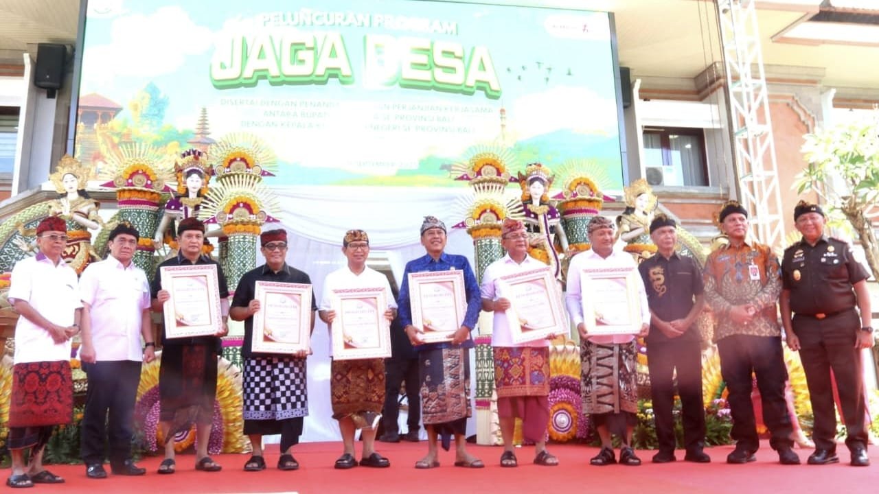 Selanjutnya dilakukan penandatanganan naskah perjanjian kerja sama antara para Bupati/Walikota se-Bali dengan Kejaksaan Negeri se-Provinsi Bali. Penandatanganan ini menjadi simbol sinergi pemerintah daerah dan kejaksaan dalam mengawal pembangunan desa. Sementara itu, Gubernur Bali, Wayan Koster, dalam sambutannya mengapresiasi Kejaksaan Tinggi Bali dan seluruh kepala daerah yang mendukung program Jaga Desa. Program ini sangat progresif, inovatif dan inspiratif dalam memecahkan masalah di tingkat desa dan desa adat.