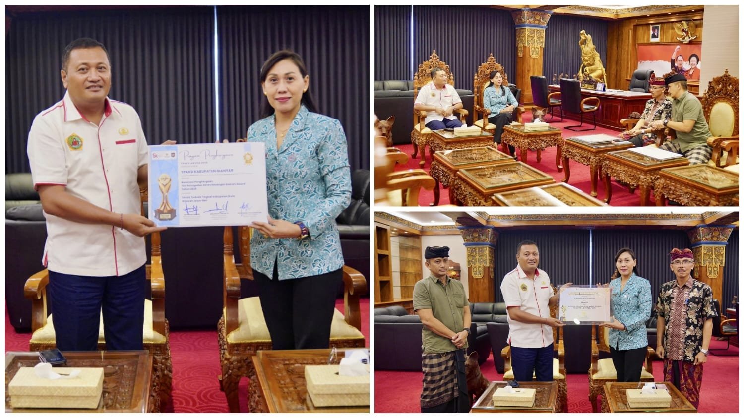 Hal tersebut disampaikan Asisten Perekonomian dan Pembangunan Kabupaten Gianyar Ida Ayu Surya Adnyani saat menyerahkan kedua Piagam Penghargaan kepada Bupati Gianyar, Kamis (8/1/2026) di Ruang Kerja Bupati Gianyar. Kedua penghargaan TPAKD Award diberikan kepada pemerintah daerah sebagai bentuk pengakuan atas komitmen dan konsistensi Pemerintah Daerah dalam mendorong inklusi dan literasi keuangan dan pemberdayaan ekonomi masyarakat.