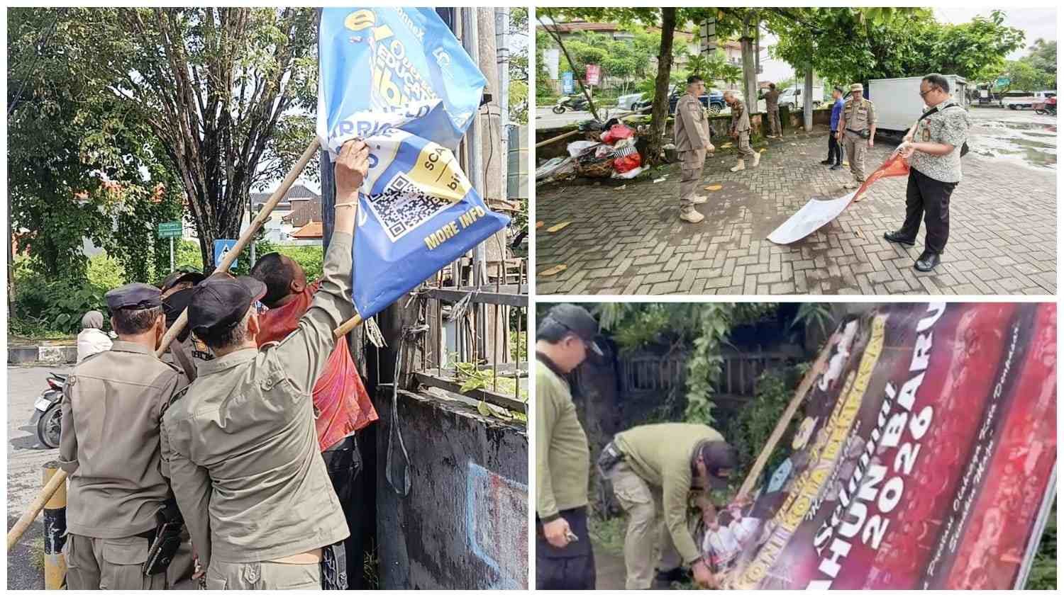 Tegakan Perda, Satpol PP Denpasar Tertibkan Baliho, Spanduk, Banner Tidak Sesuai di Fasilitas Umum