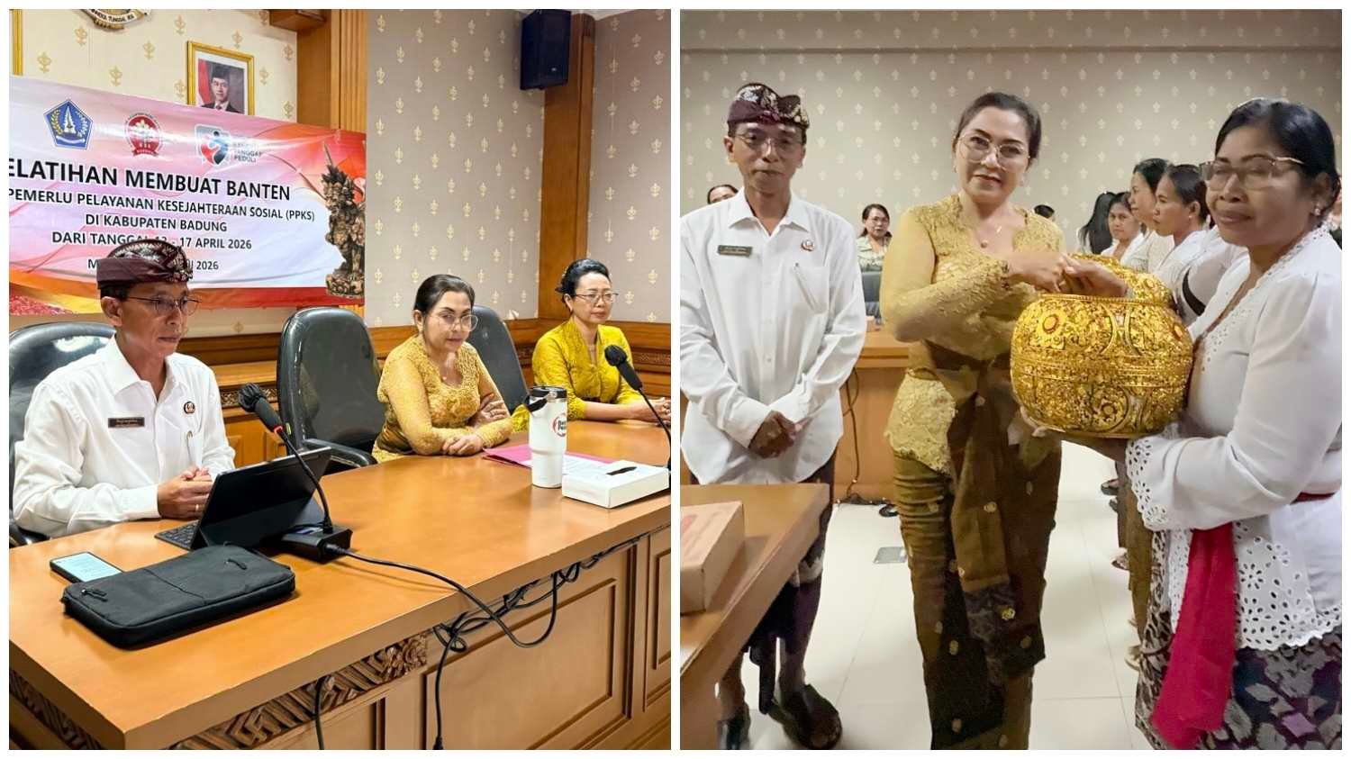 BADUNG, MataDewata.com | Ketua Koordinator Kegiatan Kesejahteraan Sosial (K3S) Kabupaten Badung, Nyonya Rasniathi Adi Arnawa, secara resmi membuka kegiatan Pelatihan Pembuatan Banten bagi Pemerlu Pelayanan Kesejahteraan Sosial (PPKS). Kegiatan yang digagas oleh Dinas Sosial Kabupaten Badung ini dilaksanakan pada Senin (13/4/2026) bertempat di Gedung Balai Budaya Giri Nata Mandala, Pusat Pemerintahan (Puspem) Badung.