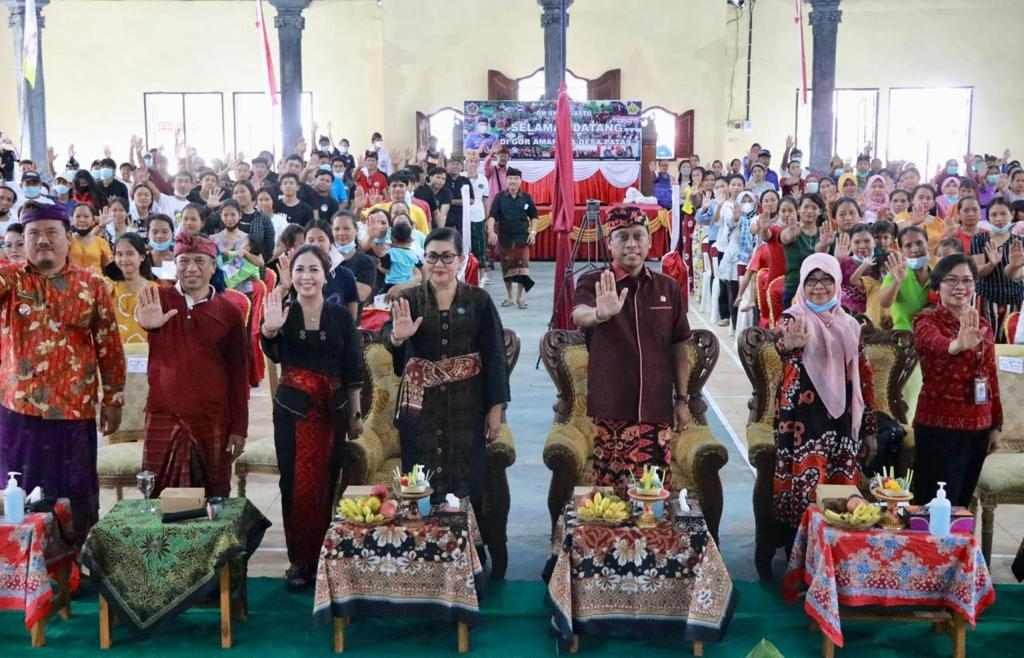 BULELENG, MataDewata.com | Ketua TP PKK Provinsi Bali, Ny. Putri Suastini Koster menghadiri Kampanye Percepatan Penurunan Stunting Tingkat Kabupaten/Kota Provinsi Bali yang diselenggarakan di GOR Amartha Desa Patas Kecamatan Gerokgak, Kabupaten Buleleng, Sabtu, Saniscara Umanis Medangkungan (13/8/2022). Kegiatan ini diselenggarakan BKKBN bekerjasama dengan Anggota Komisi IX DPR RI I Ketut Kariyasa Adnyana.