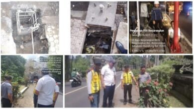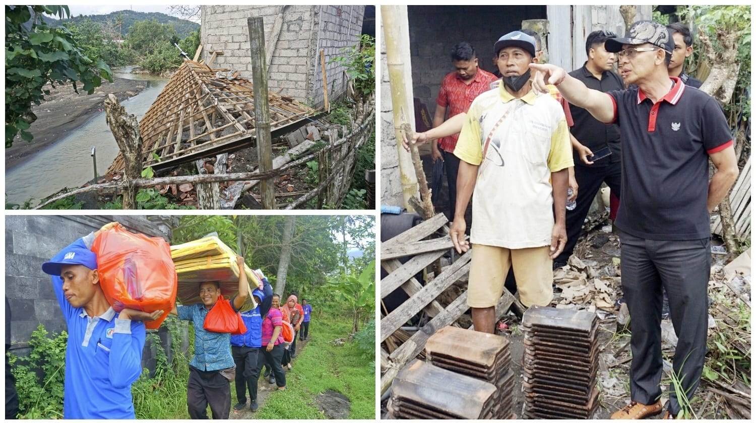 Bantuan berupa sembako, peralatan dapur, kasur, selimut dan makanan siap saji diserahkan kepada I Nyoman Sudira dan Kade Wati korban bencana longsor rumahnya tergerus aliran sungai.