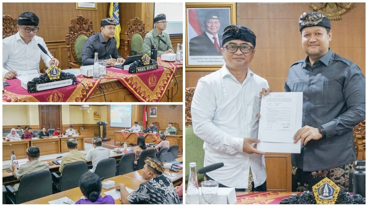 BADUNG, MataDewata.com | Wakil Bupati (Wabup) Badung, Bagus Alit Sucipta didampingi Sekda Badung IB Surya Suamba menerima exit meeting Badan Pemeriksa Keuangan (BPK) RI Perwakilan Bali, berkaitan dengan telah berakhirnya pemeriksaan pendahuluan kepatuhan atas pengelolaan pajak dan retribusi daerah dan lain-lain pendapatan yang sah tahun 2024 sampai dengan triwulan III tahun 2025. Acara exit meeting yang digelar di ruang Kriya Gosana, Puspem Badung, Kamis (18/9/2025) ini dihadiri Kepala Perwakilan BPK RI Provinsi Bali I Gusti Ngurah Satria Perwira bersama Tim Pemeriksa serta Kepala Perangkat Daerah terkait.