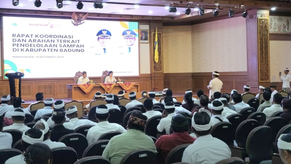 TABANAN, MataDewata.com | Menyikapi permasalahan sampah di Kabupaten Badung, terlebih adanya kebijakan pembatasan dan akan ditutupnya TPA Suwung, Bupati Badung I Wayan Adi Arnawa mengambil langkah cepat dengan mengumpulkan Camat, Perbekel, Lurah dan Pengelola TPS3R untuk koordinasi sekaligus mengambil langkah konkret penanganan sampah, Jumat (19/12/2025) di Puspem Badung.
