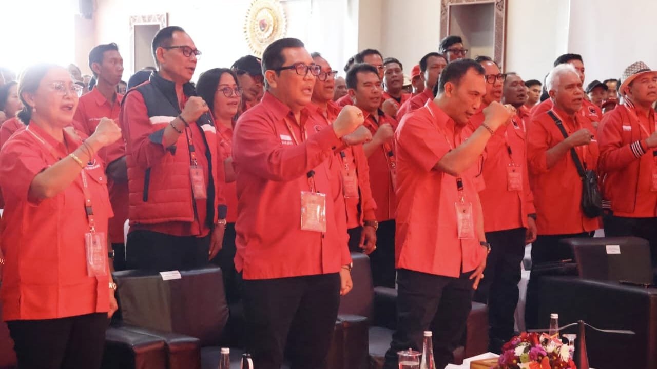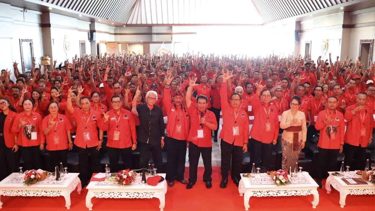 TABANAN, MataDewata.com | Dr. I Komang Gede Sanjaya.,S.E.,M.M., selaku Ketua DPC PDI Perjuangan Kabupaten Tabanan, menghadiri Pendidikan Politik dan Konsolidasi Kader Partai DPC PDI Perjuangan Kabupaten Tabanan Tahun 2025 yang berlangsung di The Blooms Garden Bedugul, Tabanan, Jumat (19/12/2025). Diikuti oleh kader Partai Banteng Moncong Putih se-Kabupaten Tabanan. Kegiatan pendidikan politik yang dilaksanakan menjadi langkah strategis dalam memperkuat barisan PDI Perjuangan di Kabupaten Tabanan.