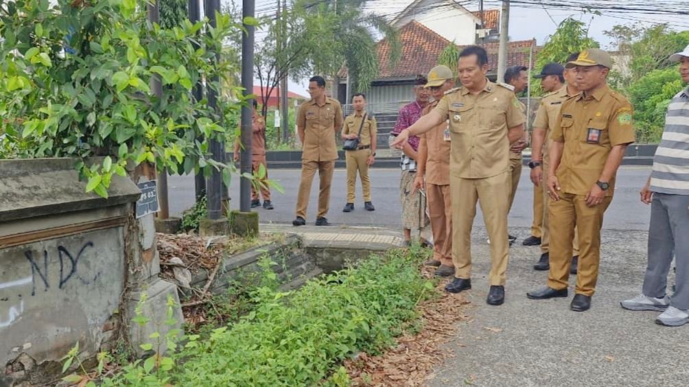 JEMBRANA, MataDewata.com | Pemerintah Kabupaten Jembrana terus mempercepat peningkatan infrastruktur wilayah sekaligus memperkuat ketahanan lingkungan berbasis masyarakat. Bupati Jembrana, I Made Kembang Hartawan bersama Wakil Bupati I Gede Ngurah Patriana Krisna (Ipat), melakukan peninjauan langsung terhadap rencana proyek perbaikan jalan di ruas Jalan Kuburan Cina, Kelurahan Baler Bale Agung, Senin (20/4/2026).