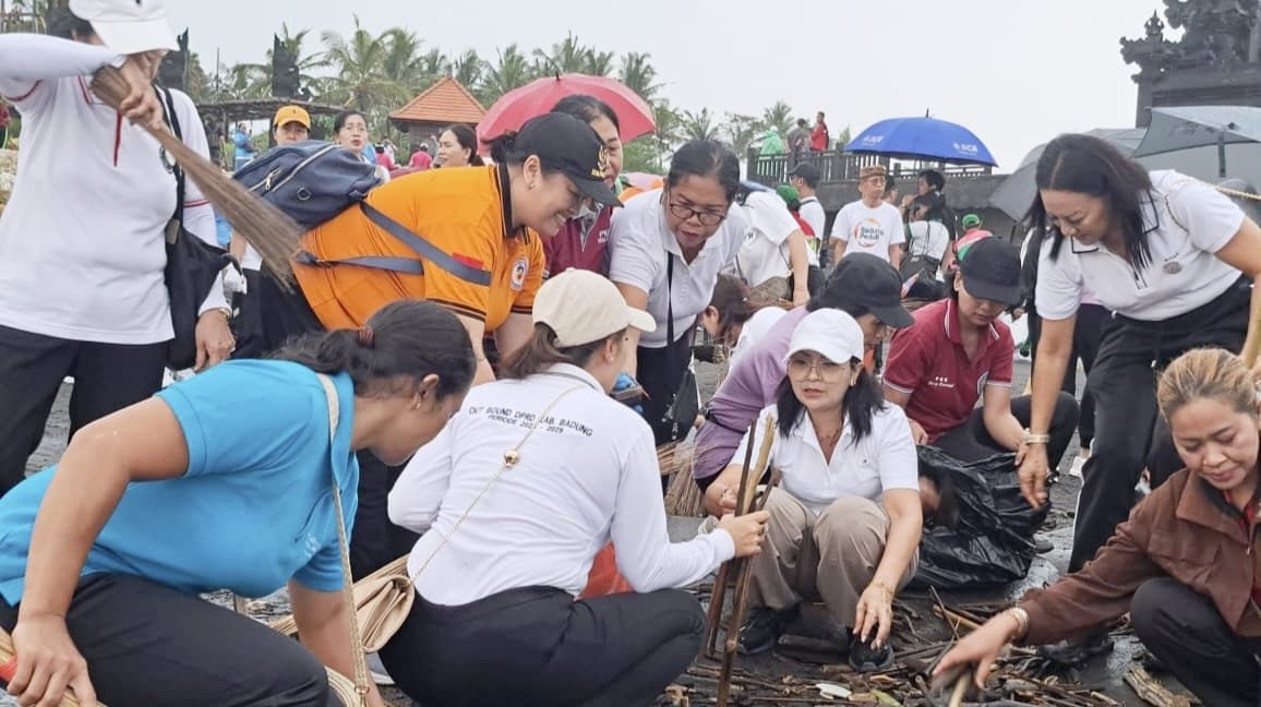 TP PKK Badung Bersihkan Sampah Sempadan Pantai Desa Cemagi