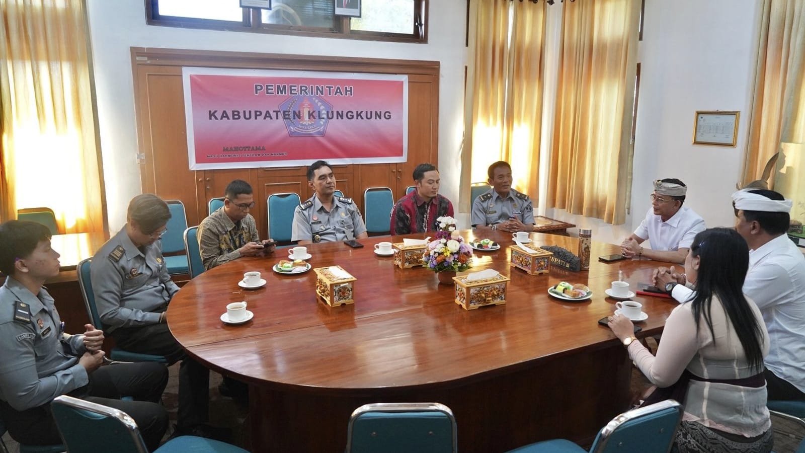 KUNGKUNG, MataDewata.com | Bupati Klungkung, I Made Satria didampingi Kepala BRIDA Klungkung, I Ketut Budiarta menerima Tim penilai verifikasi lapangan Indikasi Geografis (IG) perwakilan Direktorat Jendral Kekayaan Intlektual Kementerian Hukum dan HAM (Kemenkumham) di Ruang Rapat Kantor Bupati Klungkung, Senin (22/9/202).