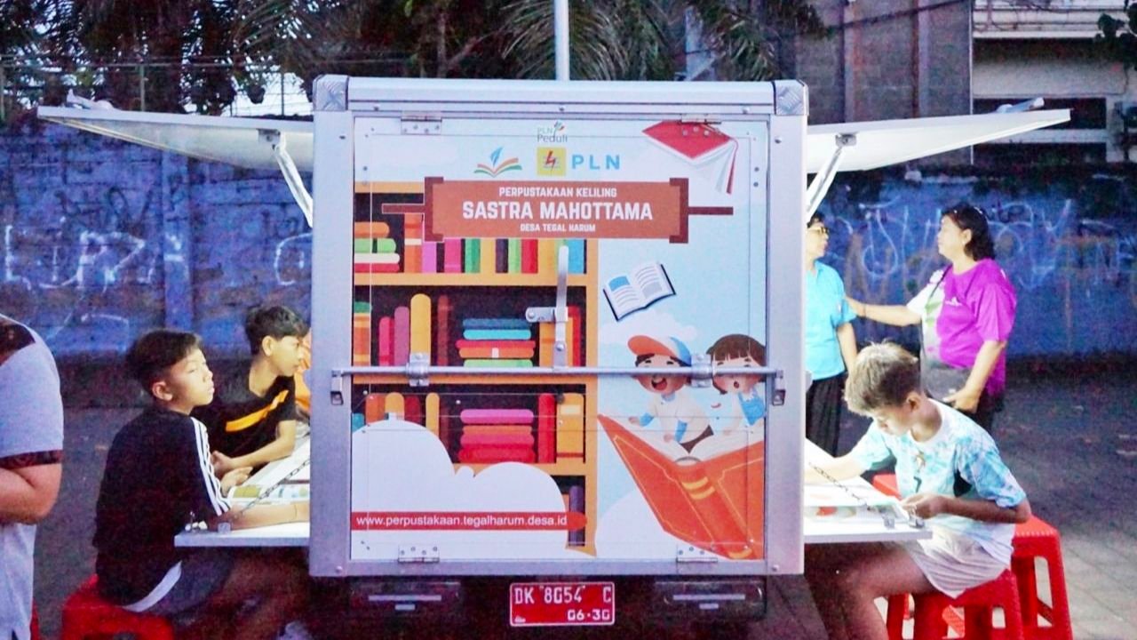 Motor perpustakaan keliling milik Perpustakaan Sastra Mahottama Desa Tegal Harum kini rutin menyambangi sekolah-sekolah dan lingkungan permukiman di wilayah Denpasar Barat. Bukan sekadar membawa buku, tetapi menghadirkan pengalaman baru: membaca yang terasa dekat, menyenangkan, dan hidup. Program ini merupakan bagian dari penguatan literasi desa yang didukung oleh PT PLN (Persero) melalui program Tanggung Jawab Sosial dan Lingkungan (TJSL), yang diluncurkan sejak 25 Juli 2025 lalu.