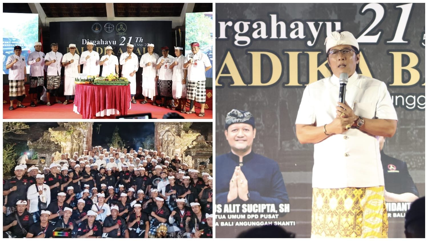 Sementara itu, Ketua Umum DPD Pusat Baladika Bali, Bagus Alit Sucipta, menyampaikan selamat HUT ke-21 Baladika Bali. Ia juga mengajak seluruh pengurus dan anggota untuk menjaga solidaritas dalam melestarikan budaya Bali. “Kami siap menjadi benteng pelestari adat, seni dan budaya Bali,” tegas Bagus Alit Sucipta.
