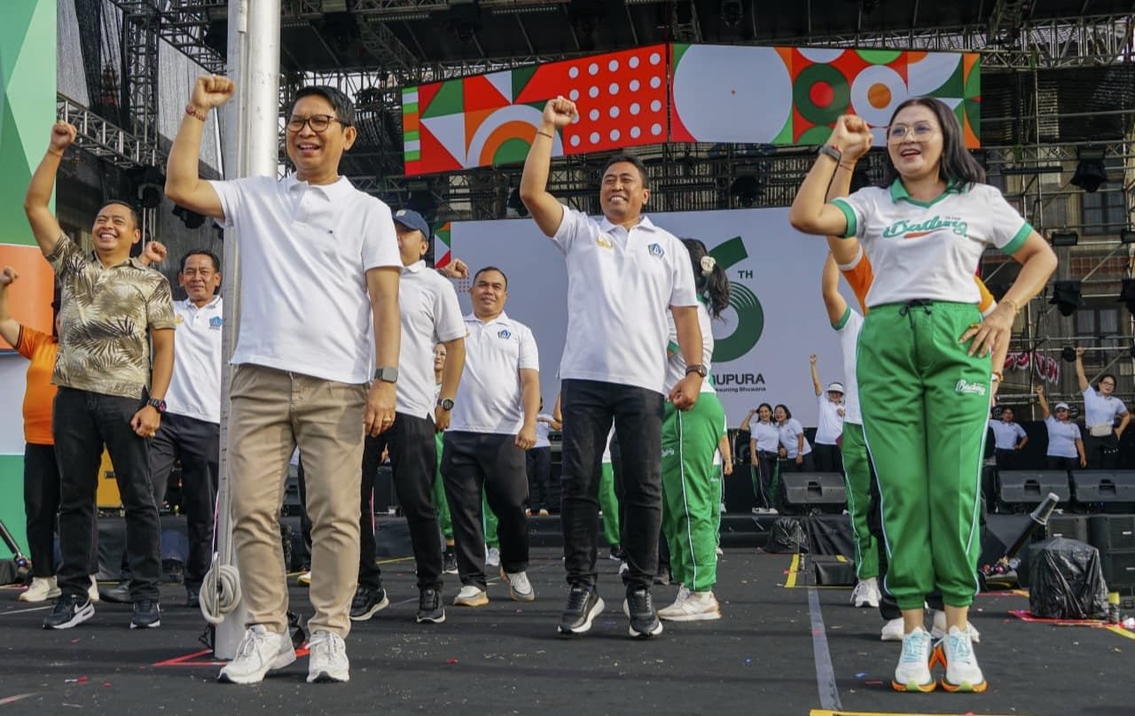 BADUNG, MataDewata.com | Memeriahkan Hari Ulang Tahun (HUT) Mangupura Ke-16, Bupati Badung I Wayan Adi Arnawa turut hadir dan berpartisipasi dalam acara senam bersama yang diselenggarakan oleh Tim Penggerak (TP) PKK Kabupaten Badung. Acara yang meliputi Senam Sat Kerti Loka Bali, Senam Adi Cipta, dan Senam Garbasari ini berlangsung di Lapangan Pusat Pemerintahan Kabupaten Badung, Minggu (23/11/2025).