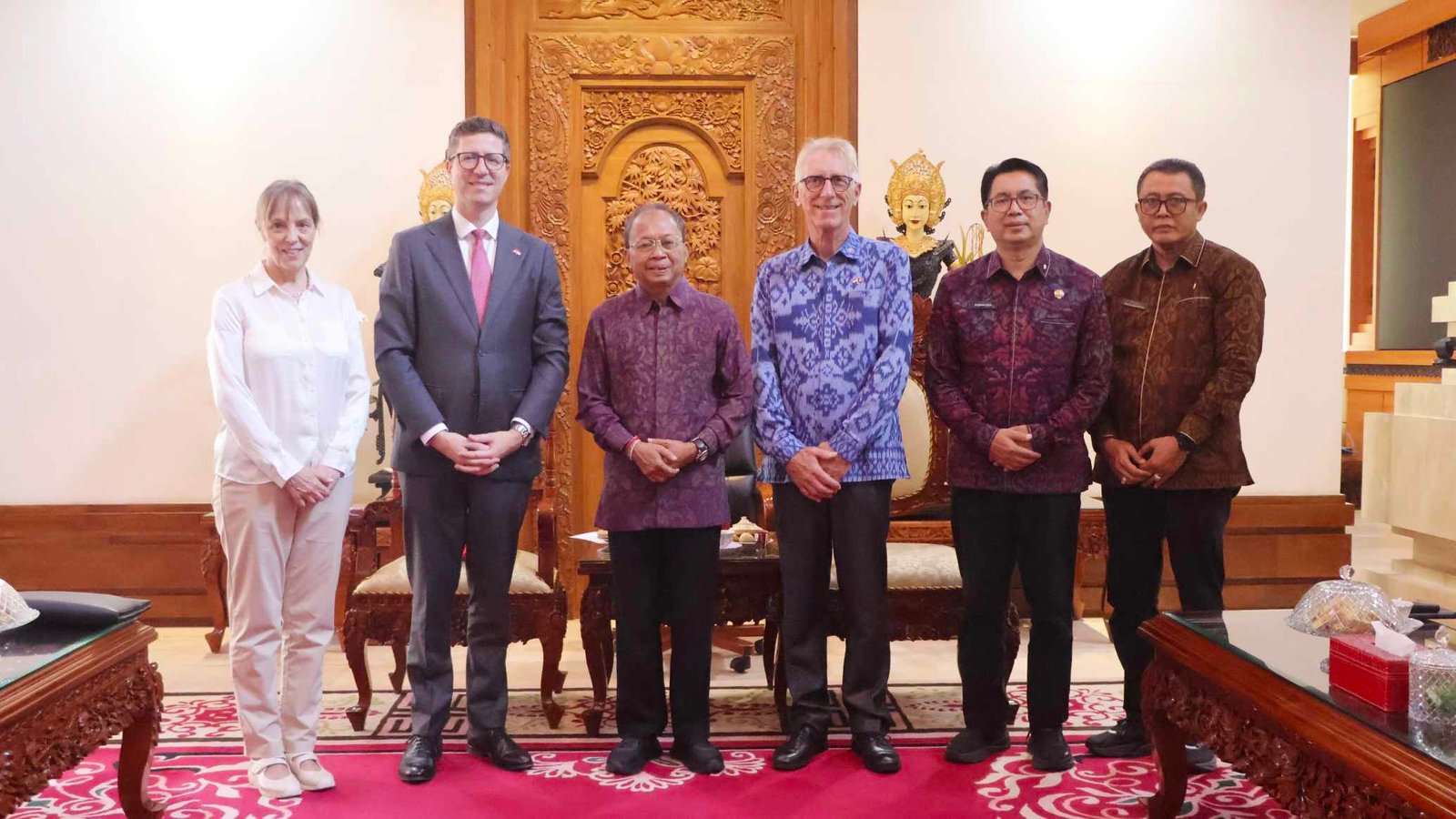 Wakil Duta Besar Swiss, Mathias Domenig, menyampaikan kekagumannya terhadap kepemimpinan Gubernur Koster dalam mengelola Bali sebagai destinasi global yang istimewa. Ia menilai komunitas warga Swiss di Bali telah berintegrasi dengan sangat baik dan menghormati budaya lokal. Selain kemitraan pendidikan vokasi yang sudah terjalin dengan Politeknik Negeri Bali, Swiss menawarkan fasilitasi bagi produk lokal Bali untuk menembus pasar internasional serta berbagi pengalaman dalam penanganan isu kemacetan dan pengelolaan sampah.