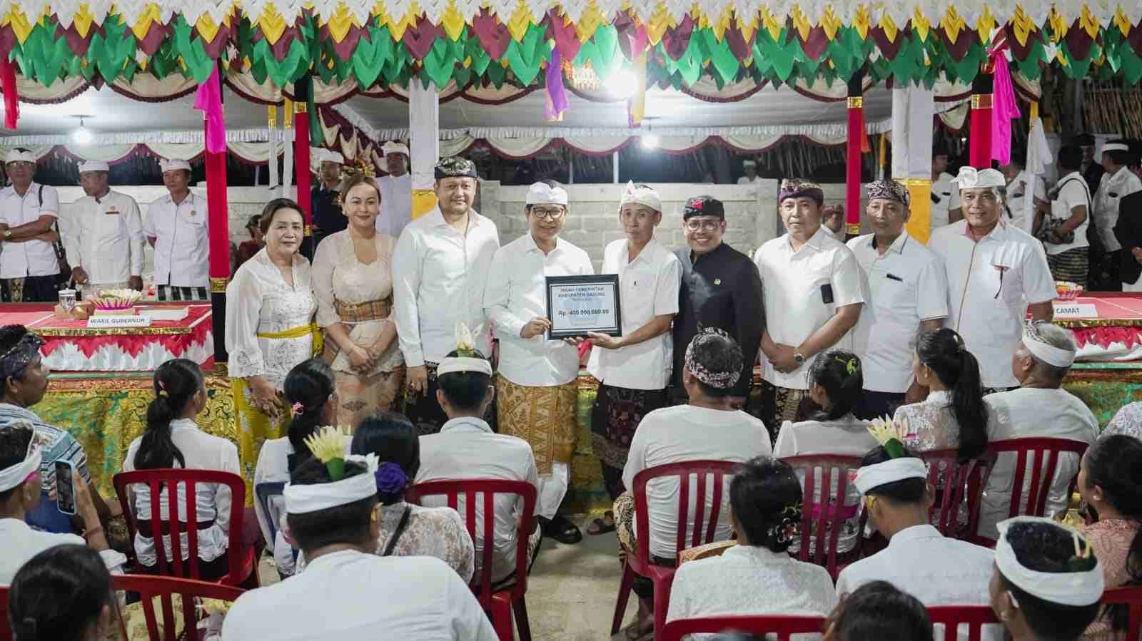 Sebagai wujud sradha bhakti dan bukti hadirnya pemerintah di tengah-tengah masyarakat, Bupati Badung I Wayan Adi Arnawa didampingi Wabup Bagus Alit Sucipta menyerahkan bantuan dana aci secara simbolis sebesar Rp400 juta yang diterima langsung oleh Bendesa Adat Tegal Darmasaba Ida Bagus Alit Sastra.