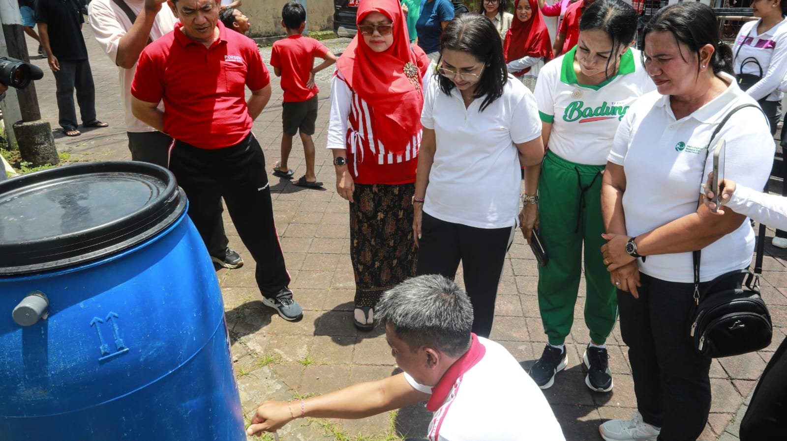 Sebelumnya Ketua TP PKK Badung bersama rombongan melaksanakan bakti sosial mengunjungi Jro Bendesa Adat Sading Ketut Surata yang sedang menderita kanker nasofaring dan Ni Wayan Misinem warga kurang mampu serta meninjau Industri Kecil Menengah (IKM) di Banjar Pekandelan. Selanjutnya rombongan meninjau lokasi ‘Tong Edan’ di Perumahan Multi Permai I, yang merupakan salah satu inovasi penanganan sampah berbasis sumber.
