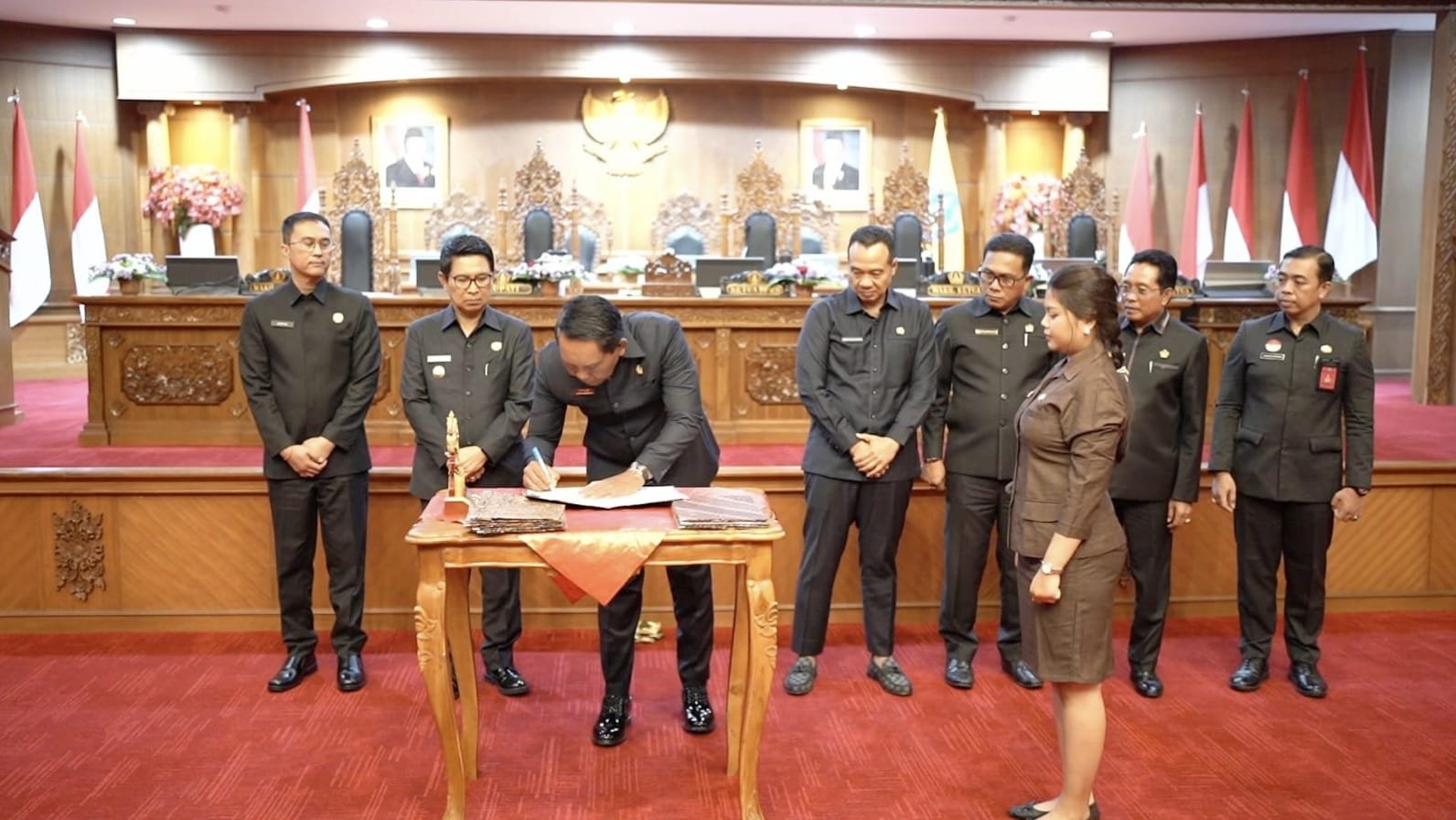 Dipimpin Ketua DPRD Badung, I Gusti Anom Gumanti didampingi Wakil Ketua I DPRD Badung, Anak Agung Ngurah Ketut Agus Nadi Putra, Wakil Ketua II DPRD Badung I Made Wijaya dan Wakil Ketua III DPRD Badung Made Sunarta serta sejumlah anggota DPRD Badung. Hadir Bupati Badung, I Wayan Adi Arnawa, Sekda Badung Ida Bagus Surya Suamba beserta jajarannya dan sejumlah petinggi Organisasi Perangkat Daerah (OPD) terkait.