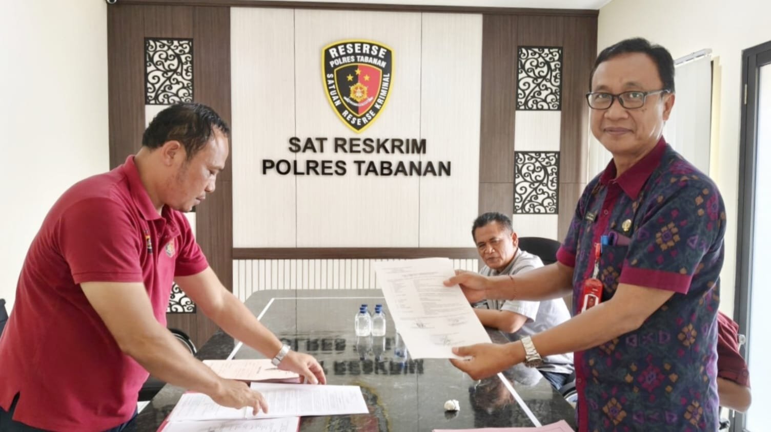 Laporan tersebut disampaikan oleh Pelaksana Tugas (Plt) Direktur Utama Perumda Sanjayaning Singasana, I Nyoman Hari Sujana, SE, M.Si, pada Rabu (25/3) sekitar Pukul 12.40 WITA. Setelah melapor di Sentra Pelayanan Kepolisian Terpadu (SPKT), pelapor kemudian diarahkan ke ruang Reskrim Polres Tabanan untuk menjalani pemeriksaan.