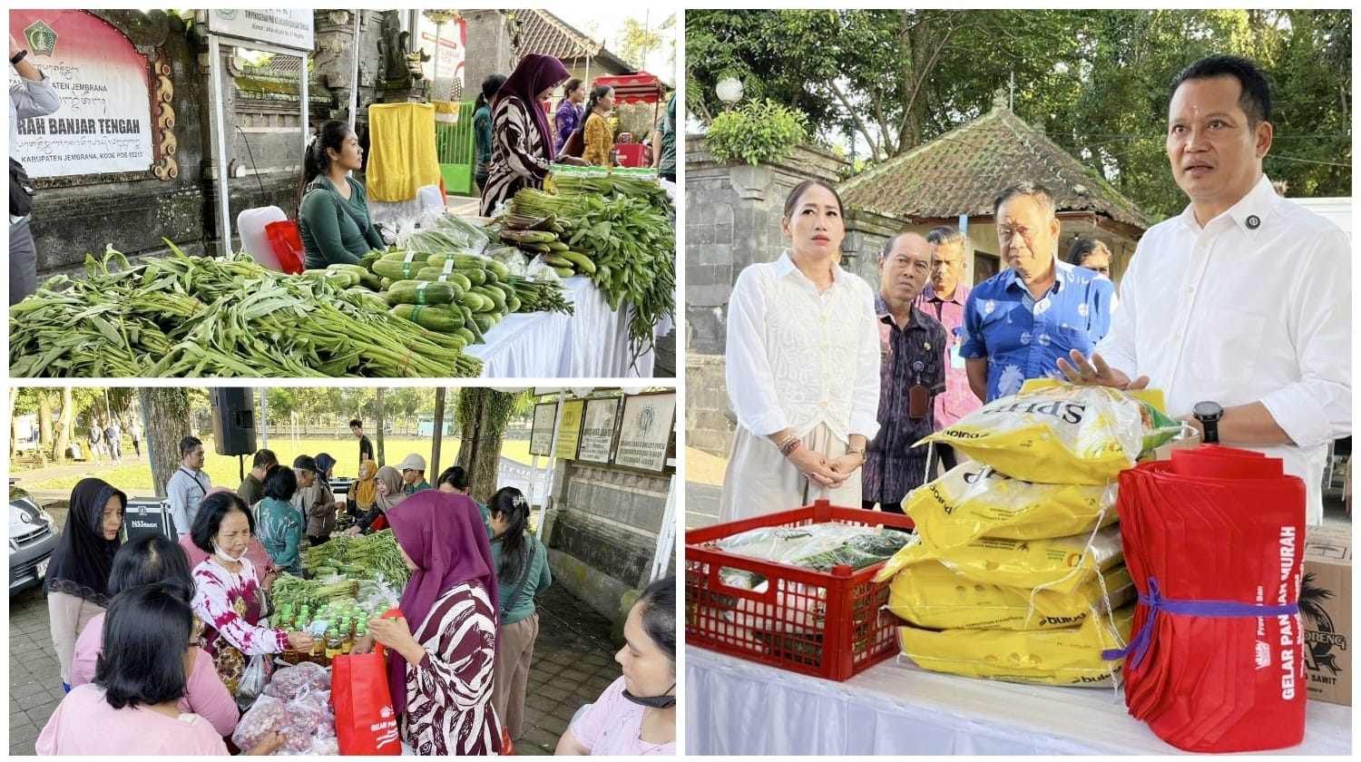 JEMBRANA, MataDewata.com | Upaya berkelanjutan untuk mengendalikan laju inflasi di daerah, Pemerintah Kabupaten Jembrana bekerjasama dengan Dinas Pertanian dan Ketahanan Pangan Provinsi Bali menggelar kegiatan Gerakan Pangan Murah di area Kantor Lurah Banjar Tengah, Selasa (25/11/2025).