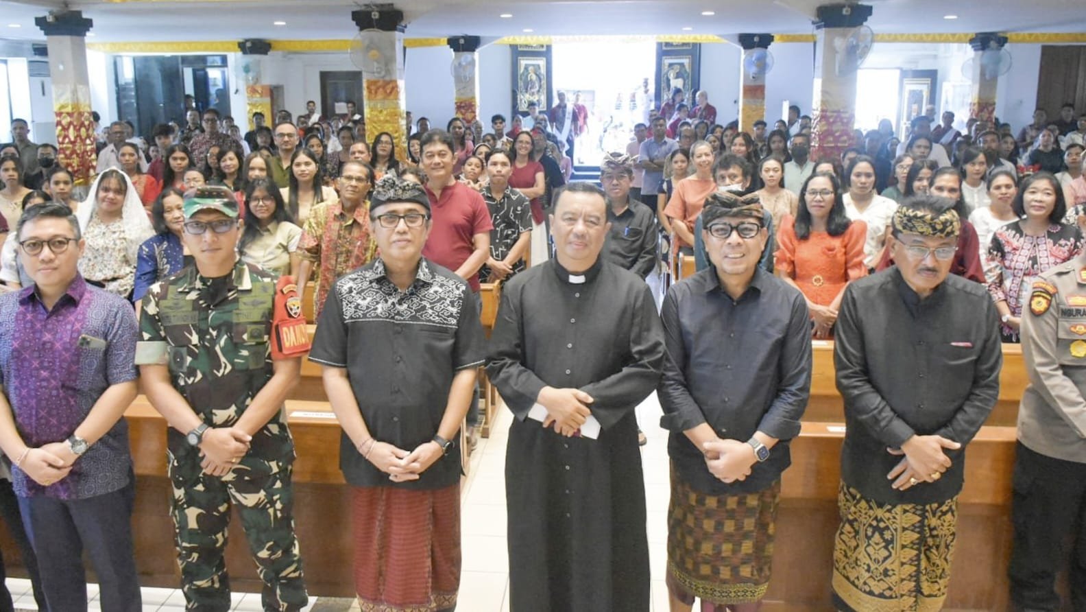 DENPASAR, MataDewata.com | Walikota Denpasar, I Gusti Ngurah Jaya Negara bersama Wakil Walikota Denpasar, I Kadek Agus Arya Wibawa, Ketua DPRD Kota Denpasar, I Gusti Ngurah Gede serta Forkopimda dan FKUB Kota Denpasar melaksanakan peninjauan Perayaan Ibadah Hari Natal Tahun 2025 di Kota Denpasar pada Kamis (25/12/2025). Sebanyak tiga gereja menjadi tujuan peninjauan, yakni Gereja Pantekosta di Indonesia (GPdI) Bukit Sion, Gereja Katolik Paroki Santo Petrus dan Gereja Katolik Roh Kudus Katedral Denpasar.