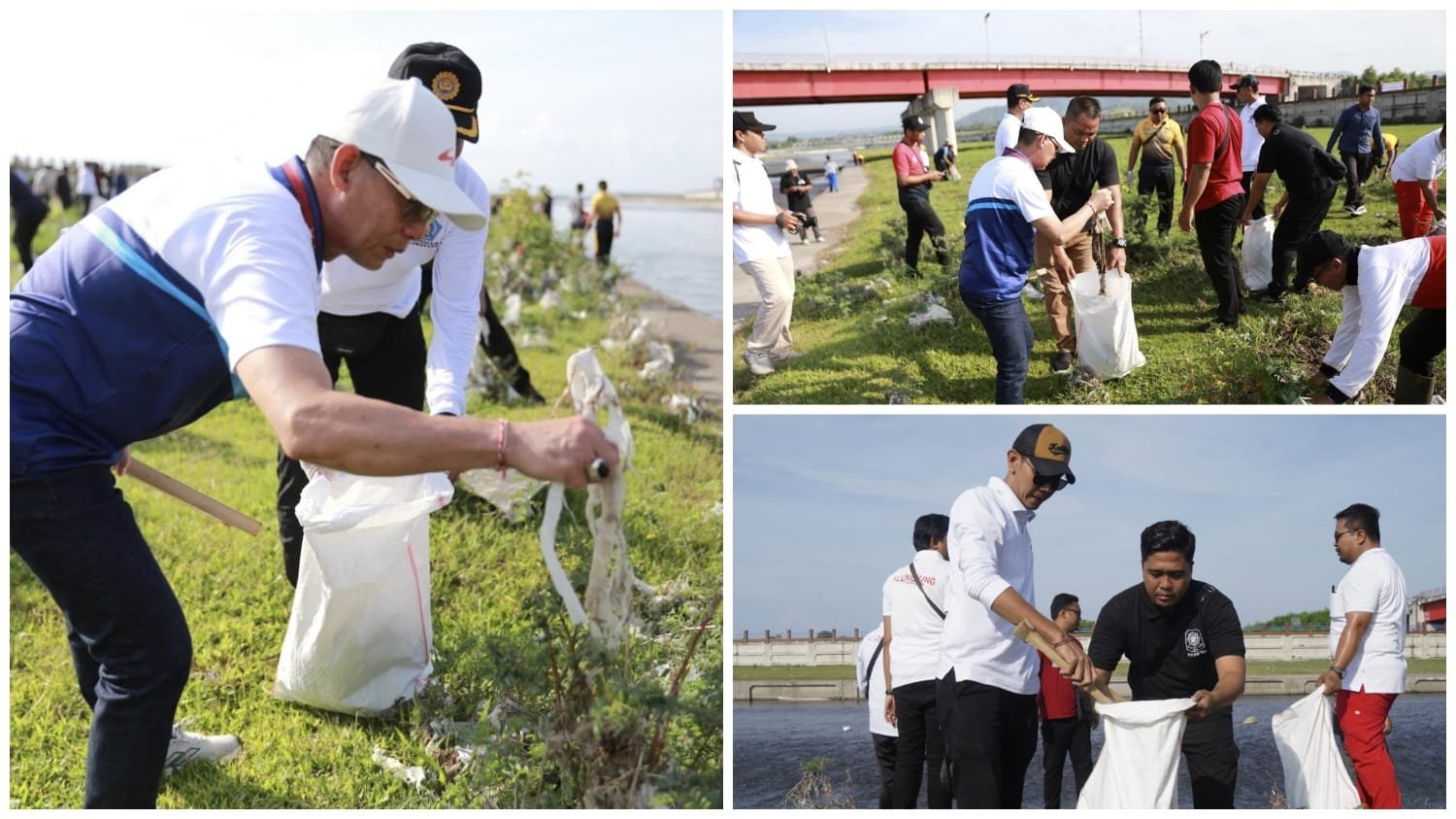 KLUNGKUNG, MataDewata.com | Pemerintah Kabupaten (Pemkab) Klungkung menggelar Gotong Royong Semesta Berencana Bersih-Bersih Sungai di Jembatan Merah area Pusat Kebudayaan Bali (PKB), Desa Gunaksa, Kecamatan Dawan, Kabupaten Klungkung, Minggu (26/10/2025). Dipimpin langsung Bupati Klungkung, I Made Satria bersama Wakil Bupati Klungkung, Tjokorda Gde Surya Putra yang diikuti dari unsur TNI/Polri serta OPD terkait dilingkungan Pemkab Klungkung.