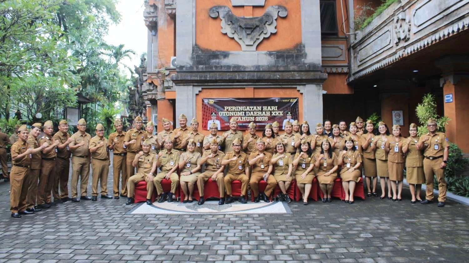DENPASAR, MataDewata.com | Sekda Kota Denpasar, I Gusti Ngurah Eddy Mulya, memimpin Apel Hari Otonomi Daerah (OTDA) ke-30 Tahun 2026 di Kota Denpasar yang diikuti oleh seluruh kepala OPD beserta Direktur Perumda di halaman Kantor Walikota Denpasar, Senin (27/4/2026). Peringatan tahun ini mengusung tema “Dengan Otonomi Daerah Kita Wujudkan Asta Cita”.