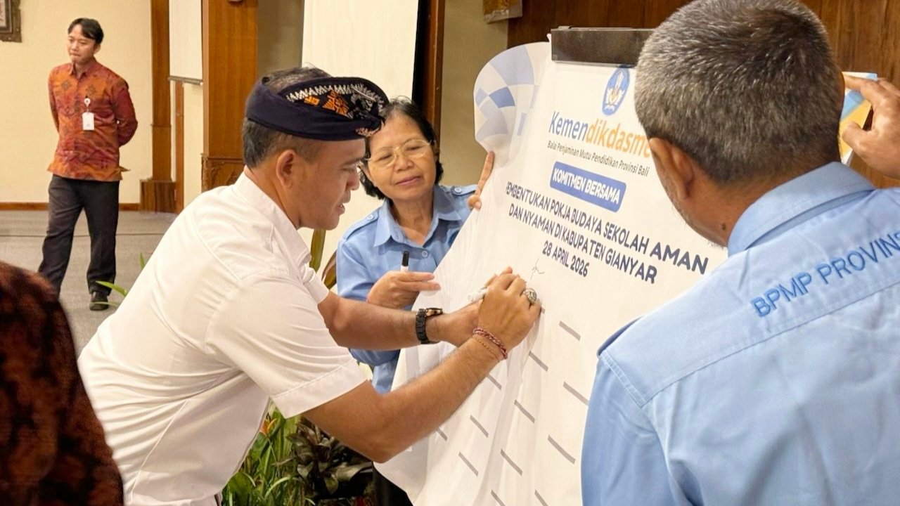 GIANYAR, MataDewata.com | Pemerintah Kabupaten Gianyar bersinergi dengan Balai Penjaminan Mutu Pendidikan (BPMP) Provinsi Bali melaksanakan pendampingan pembentukan Kelompok Kerja (Pokja) Budaya Sekolah Aman dan Nyaman (BSAN). Kegiatan yang dipusatkan di Royal Casa Ganesha Ubud, Selasa (28/4/2026), merupakan langkah strategis memperkuat tata kelola lingkungan pendidikan di daerah.