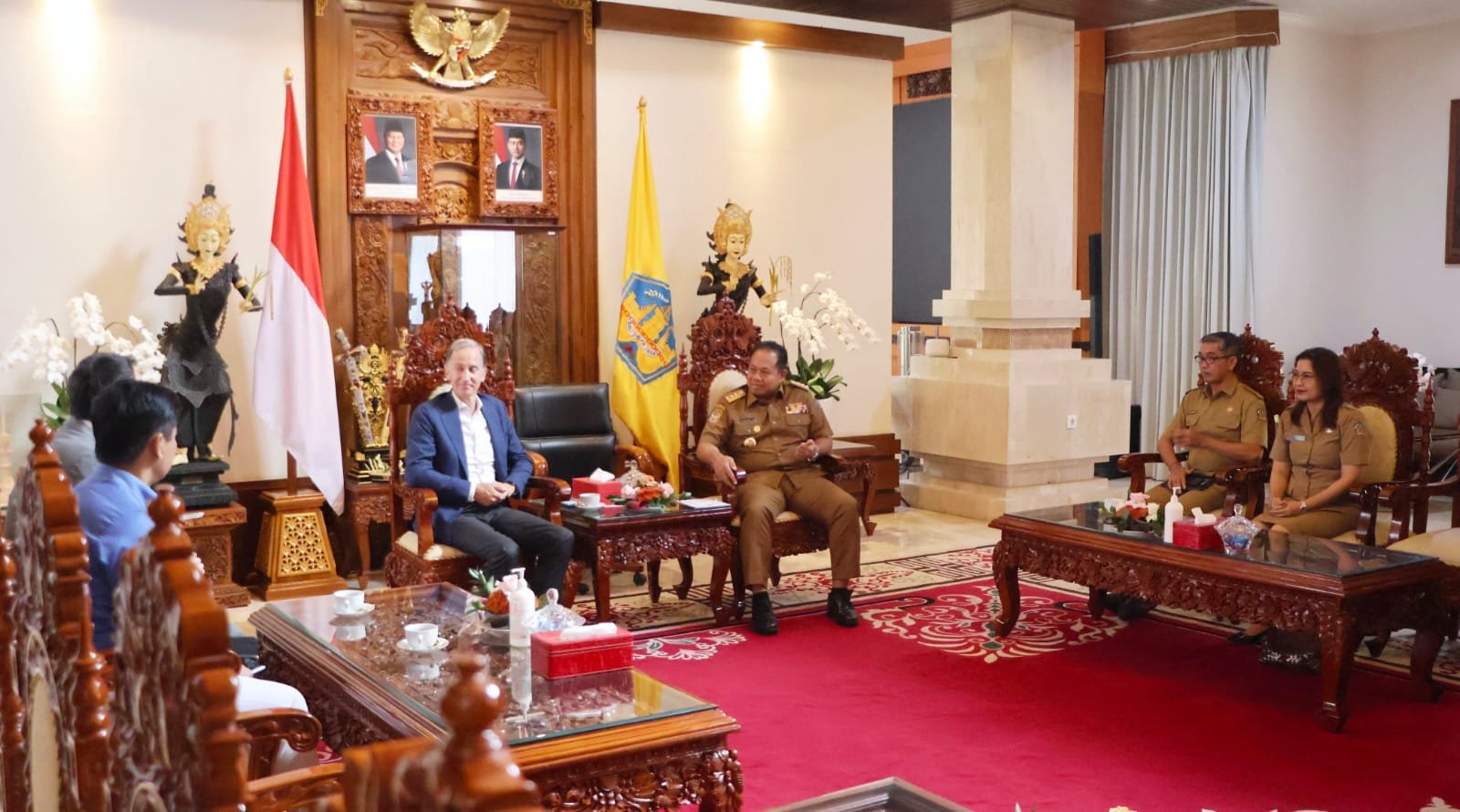 DENPASAR, MataDewata.com | Sambutan hangat disampaikan oleh Pj. Gubernur Bali, S.M. Mahendra Jaya ketika menerima audiensi dari Duta Besar Belanda untuk Indonesia, Timor Leste dan ASEAN, Marc Gerritsen, di Kediaman Resmi Gubernur Bali, Jaya Sabha, Denpasar, pada Senin (28/10/2024).