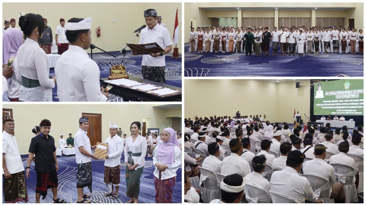 JEMBRANA, MataDewata.com | Menyusul 457 PPPK Tahap I yang sudah dilantik pada bulan Juli lalu, Bupati Jembrana, I Made Kembang Hartawan kembali melantik dan mengambil sumpah PPPK Tahap II sejumlah 144 orang. Pada acara tersebut juga dilantik dan mengambil sumpah PNS dari lulusan IPDN sebanyak 6 orang. Berlangsung di Ballroom Gedung Kesenian Ir. Soekarno, Selasa (30/9/2025).