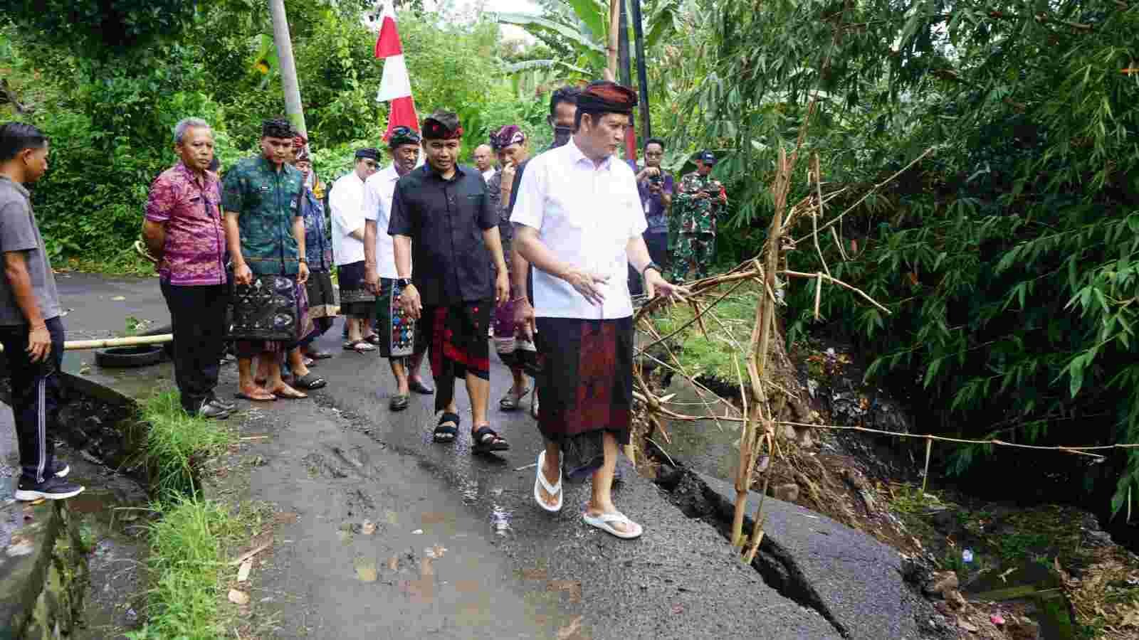 JEMBRANA, MataDewata.com | Bupati Jembrana, I Made Kembang Hartawan bersama Wakil Bupati IGN Patriana Krisna (Ipat) turun langsung ke lokasi jalan longsor di jalur Pengastian-Pendem, Selasa (30/9/2025). Kunjungan ini dilakukan untuk meninjau secara langsung kondisi kerusakan serta memastikan percepatan proses perbaikan infrastruktur jalan yang terdampak.