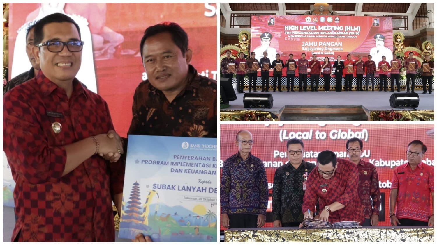 Dilanjutka penandatanganan kerja sama antara Perumda Sanjayaning Singasana dan PT Bank Pembangunan Daerah (BPD) Bali. Selain itu, Bank Indonesia juga menyerahkan bantuan sarana dan prasarana pertanian kepada lima kelompok subak binaan, yakni Subak Timan Agung, Subak Aseman IV, Subak Lanyah Delod Jalan, Subak Gadon III dan Subak Empas Mal Kangin.
