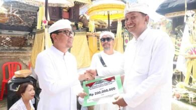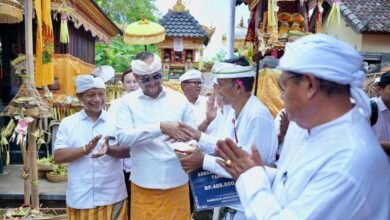 Bupati Serahkan Bantuan Pemulihan Dampak Bencana Pura Taman Beji Magendra Tegal Darmasaba