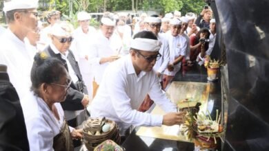 DENPASAR, MataDewata.com | Wakil Wali Kota Denpasar, I Kadek Agus Arya Wibawa menghadiri Upacara Ngeratep, Melespas lan Mapasupati Palawatan Ratu…